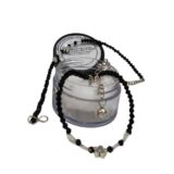 * *Material*: Premium quality black beads with silver-toned floral charms