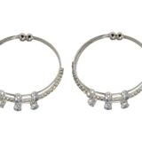 Enhance your traditional and party look with this 2-set of stylish bangles featuring one pair each in elegant gold and silver finishes. Crafted with fine attention to detail, these bangles are adorned with sparkling crystal stones and hanging charms that add a touch of grace and glamour. Perfect for festive occasions, weddings, or daily wear, this bangle set is a must-have in your jewelry collection.