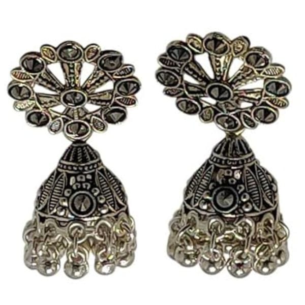 - Elegant Design: Features a floral oxidized stud with intricate jhumka-style dangler and pearl beads.