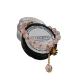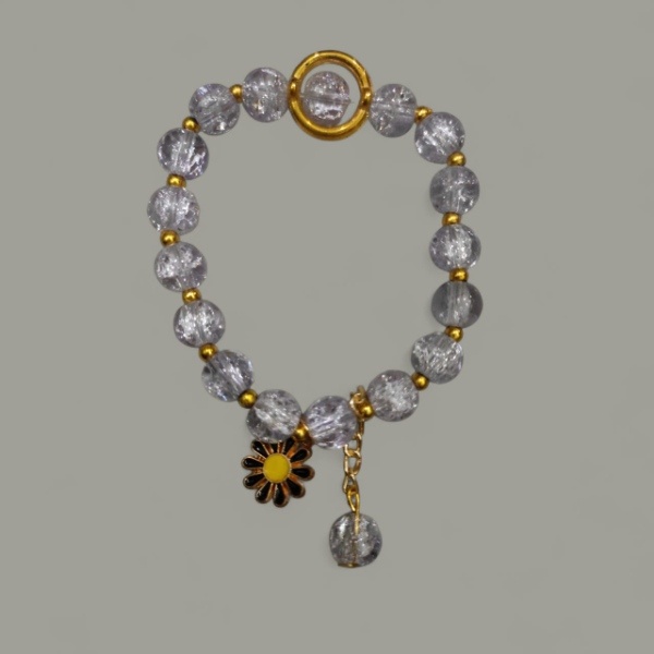 Add a touch of charm and sophistication to your accessories collection with this beautifully crafted beaded bracelet. Featuring shimmering translucent beads accented with delicate gold-toned spacers, this bracelet exudes elegance and versatility. The charming flower and heart pendants, along with playful charms, make it a perfect accessory for any occasion. Complete with an adjustable chain for a comfortable fit, this bracelet is ideal for gifting or personal indulgence. Elevate your style with this eye-catching piece that combines timeless design with a trendy flair.