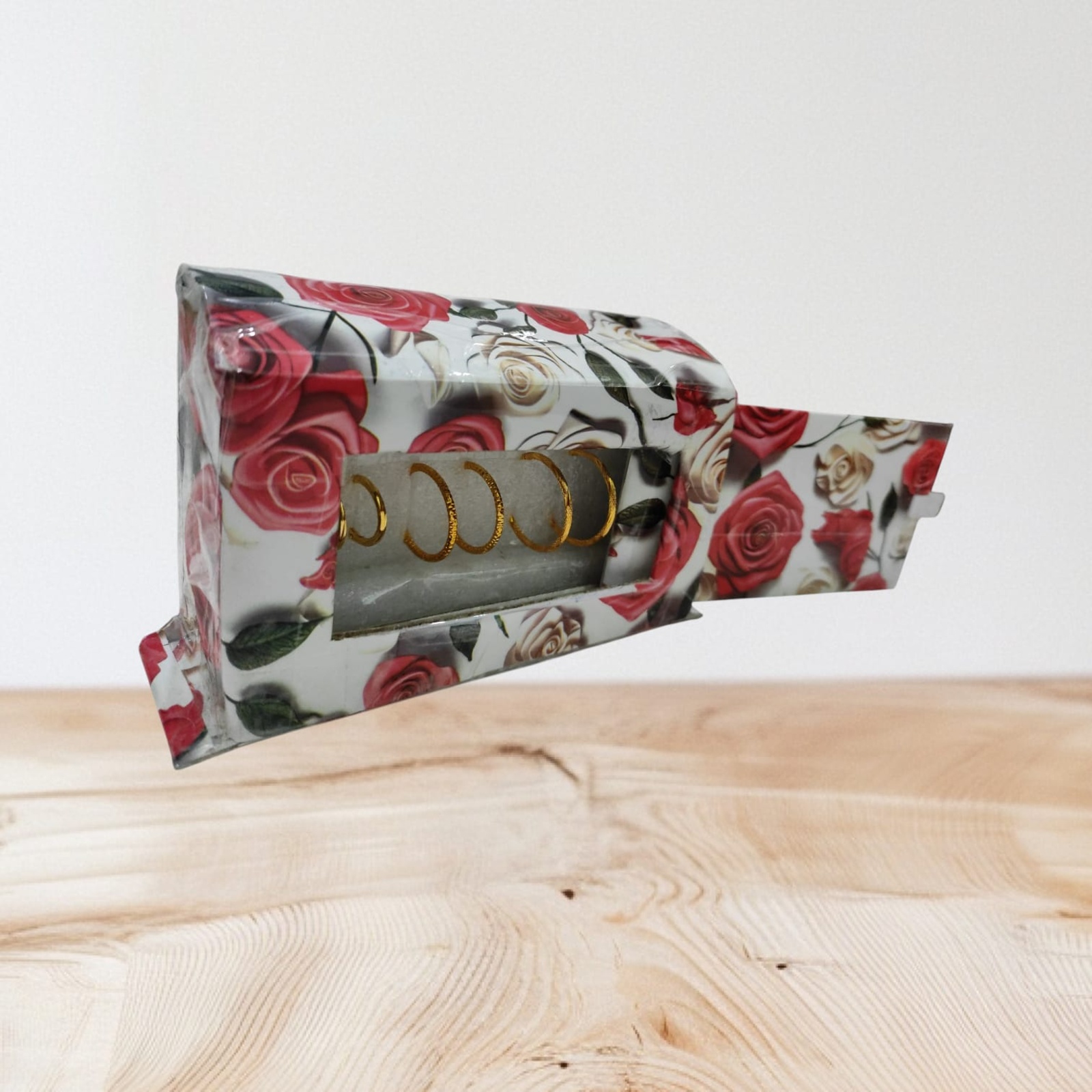 – Presented against a black background in one of the images, this setting accentuates the earrings and creates a striking visual impact.