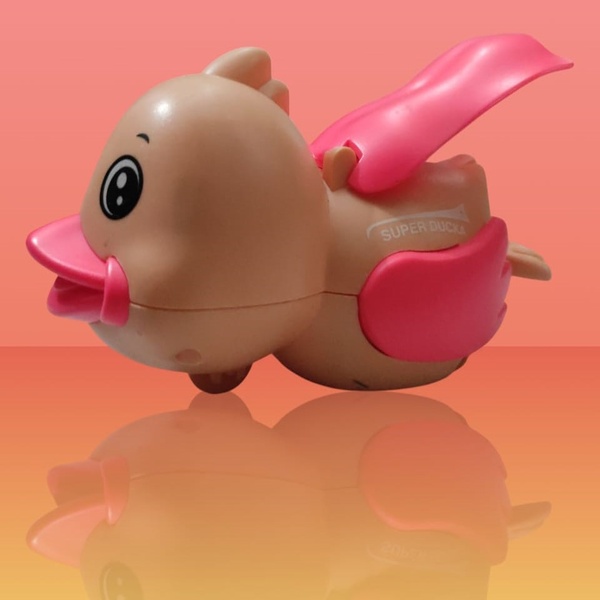 The image features a plastic toy duck adorned with pink wings. This playful figure is categorized as a super cet and may serve as a vibrant addition to various collections. It can also function as a piggy bank or container, adding both charm and utility. The tags associated highlight its nature as an animal figure and toy, with cartoon-like qualities.