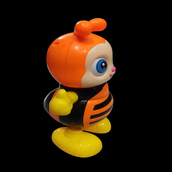 Atmosphere and Mood: The image projects a mood of cheerfulness and child-like delight. The bright colors, smiling bee, and musical notes all contribute to a playful and inviting atmosphere, clearly aimed at attracting the attention of children and parents looking for an entertaining and engaging toy.